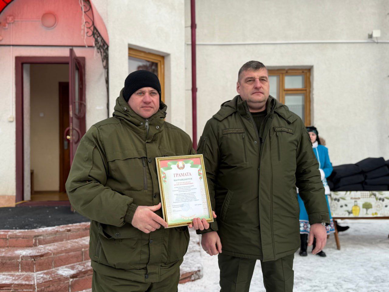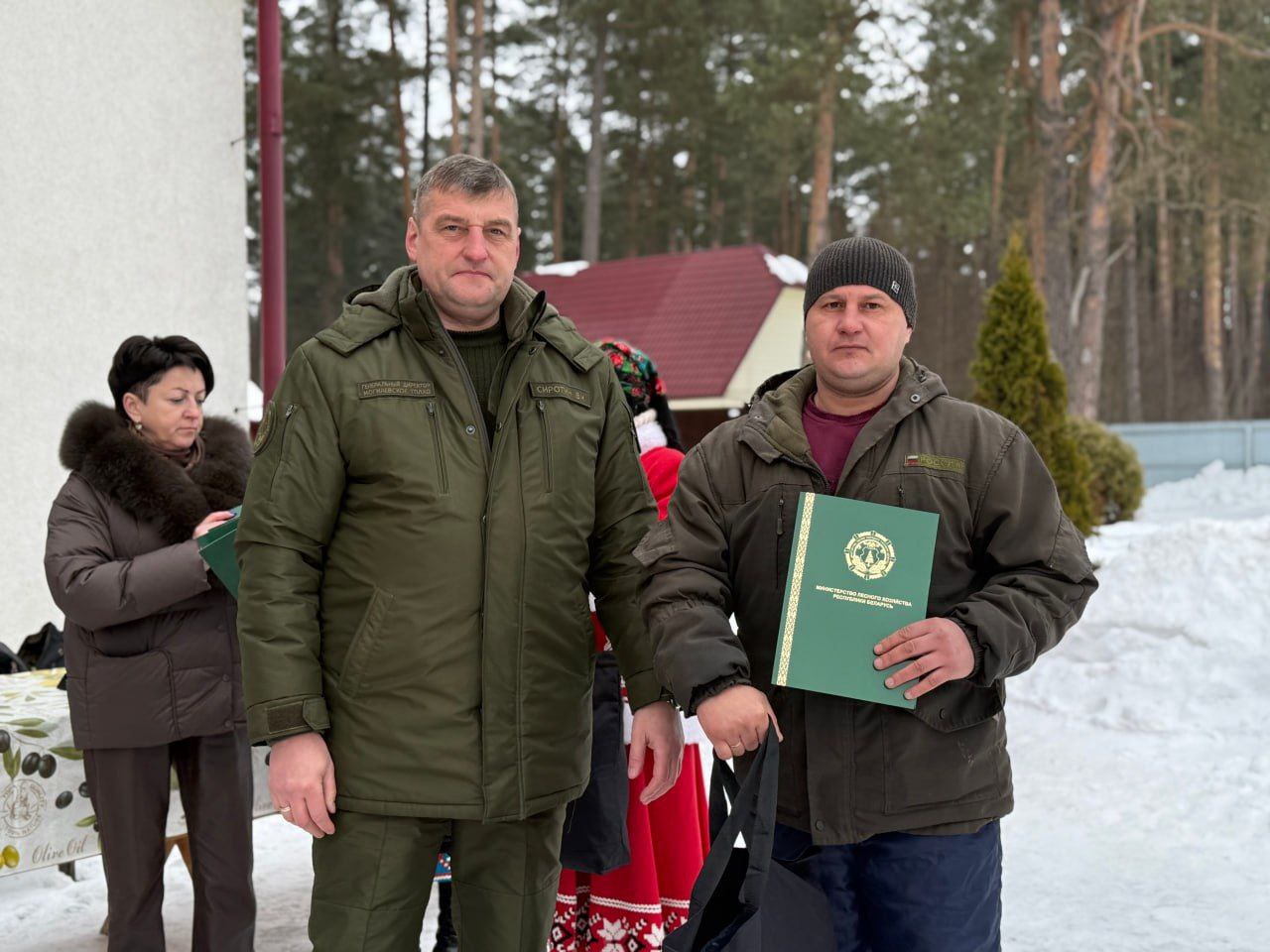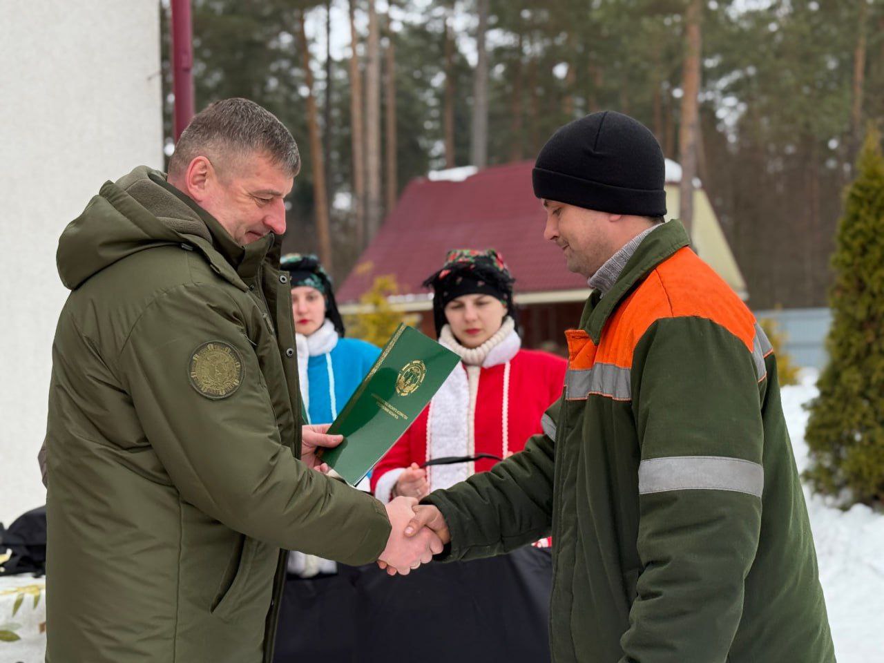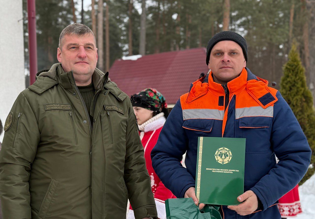 Генеральный директор Могилевского ГПЛХО Владимир Сиротин выразил благодарность тем, кто ежедневно стоит на страже главного богатства страны, и вручил грамоту мастеру погрузочно-разгрузочных работ лесопункта «Коммунары» ГЛХУ «Костюковичского лесхоза» Игорю Тихоненко.