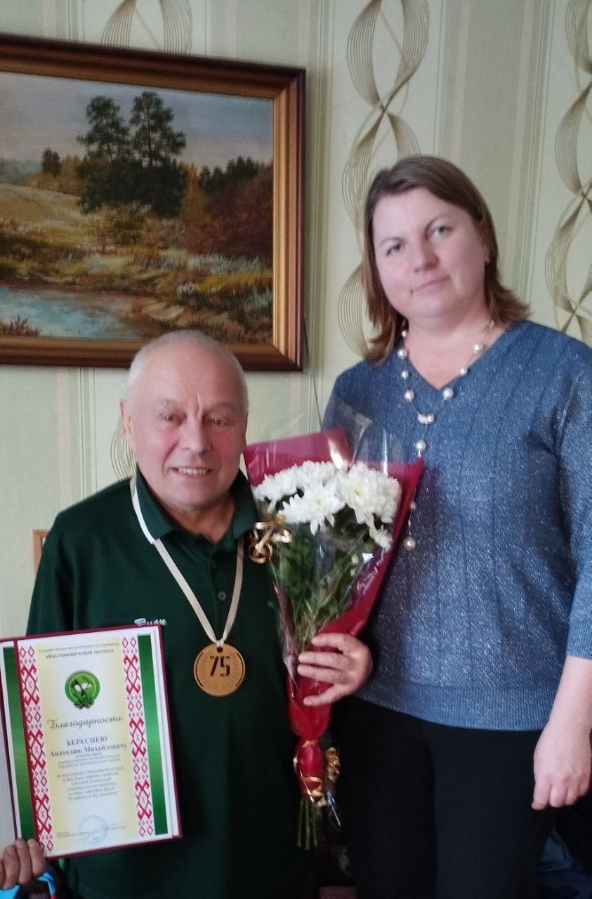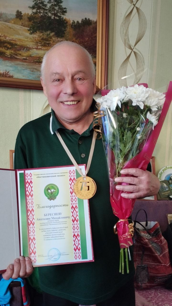 Сегодня 75 летний юбилей отмечает ветеран труда Костюковичского лесхоза Анатолий Береснев. Всю свою жизнь Анатолий Михайлович посвятил работе в Костюковичском лесхозе. За 40 с лишним лет работал на различных должностях, и что примечательно был первым из числа главных специалистов - заместитель директора по информационно- идеологической работе.