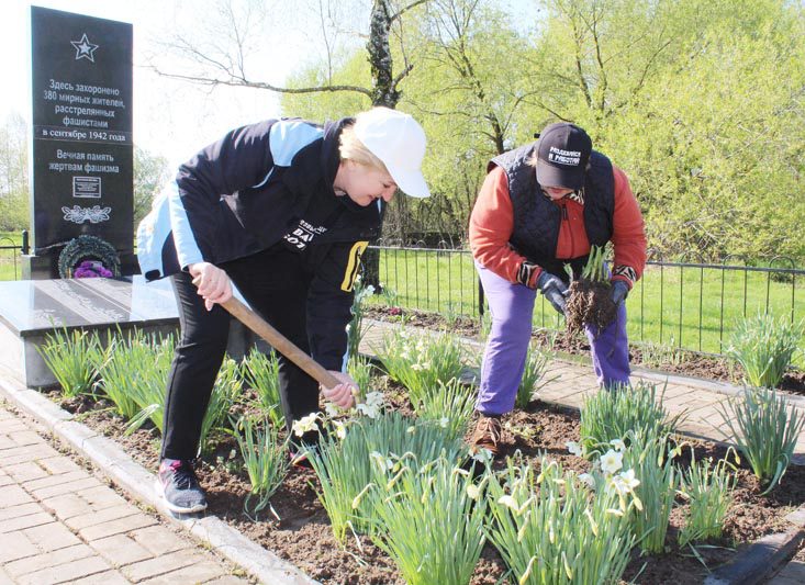Здесь захоронено 380 мирных жителей, расстрелянных фашистами в годы Великой Отечественной войны. К участникам субботника присоединились депутат Палаты представителей Национального собрания Республики Беларусь Александра Михеенко и председатель районного Совета депутатов Лариса Герасимова.