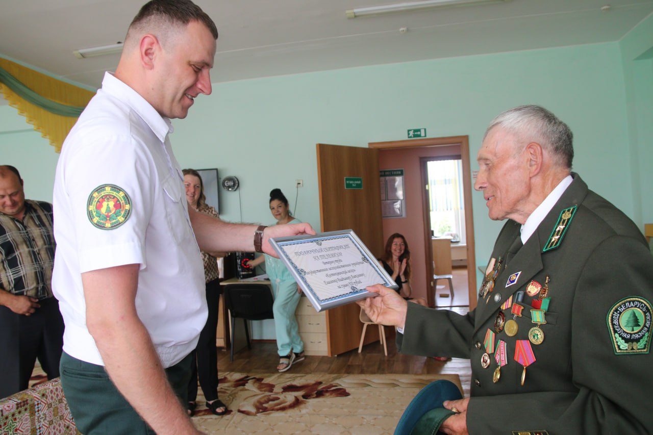 В память о памятном событии Владимиру Алексеевичу директор лесхоза Сергей Августинович вручил подарочный сертификат.