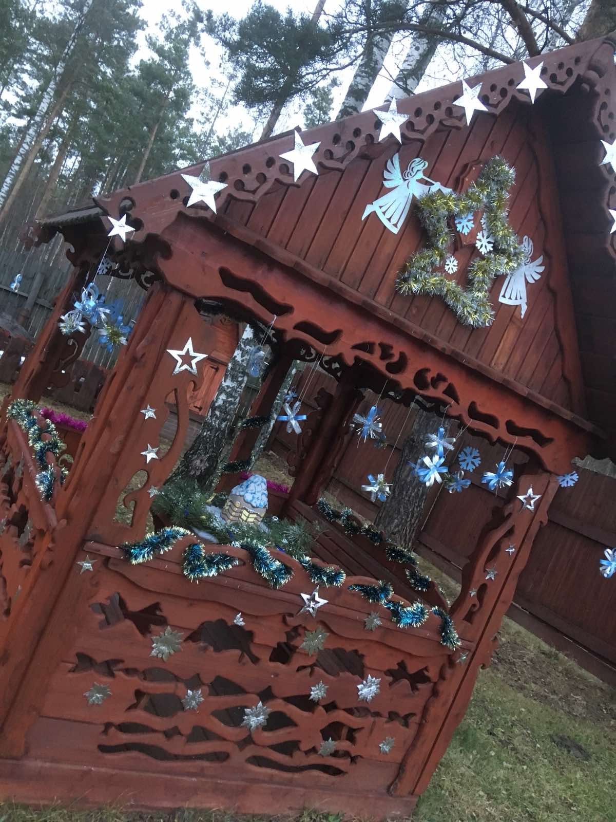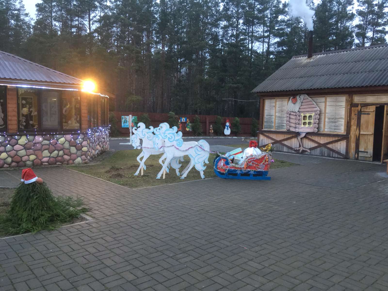 Именно в сказку превращается домик охотника ГЛХУ «Костюковичский лесхоз» в период рождественских и новогодних праздников. И вряд ли можно было найти лучшее место для размещения резиденции Дедушки Мороза. Разукрашенные деревья, беседки, а также масса забавных композиций создают здесь атмосферу сказочного царства.