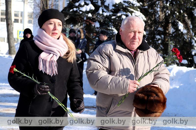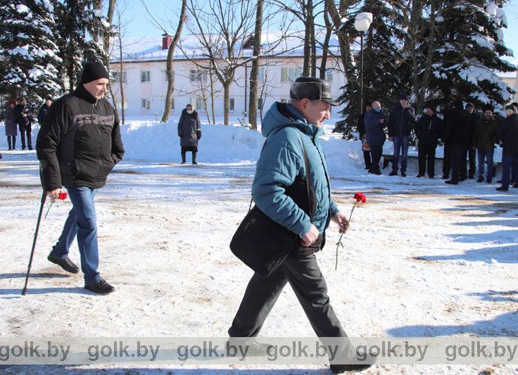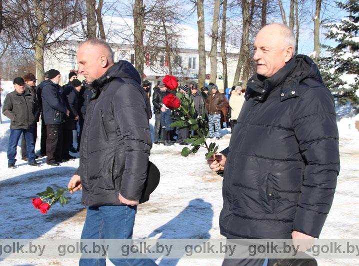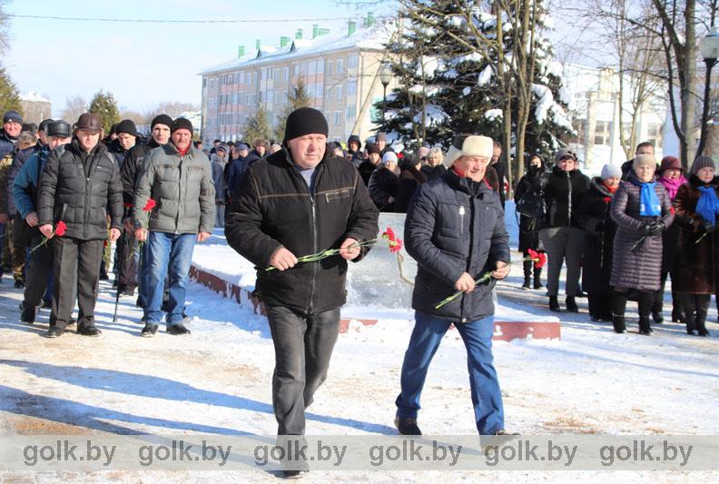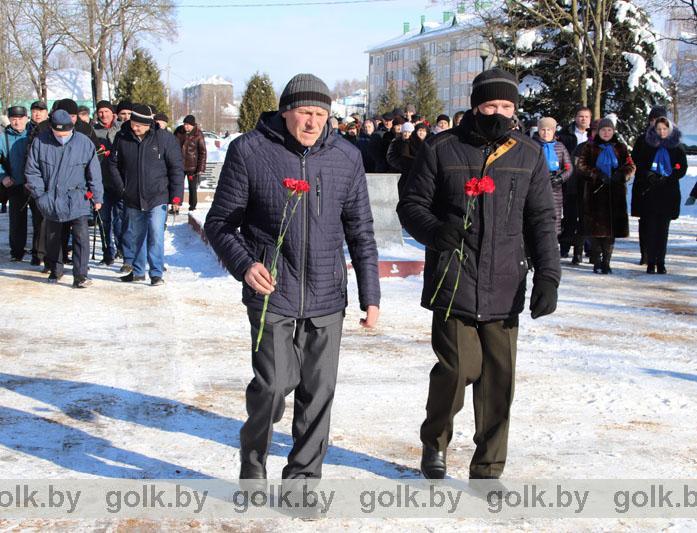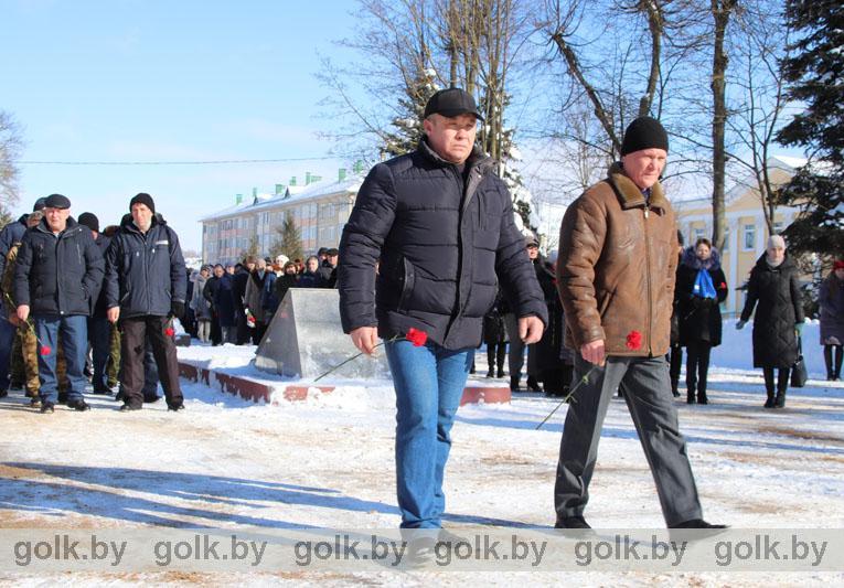 По традиции память белорусов, павших в Афганской войне, почтили 15 февраля в городском сквере во время торжественной церемонии возложения цветов к памятнику «Слава воинам-интернационалистам». Участие в митинге приняли представители районной власти, воины-интернационалисты, руководители и работники организаций и предприятий района, члены районной организации общественного объединения «Белорусский союз ветеранов войны в Афганистане». Со словами искренней признательности и благодарности в адрес ветеранов афганской войны обратился первый заместитель председателя райисполкома Иван Антоненко.